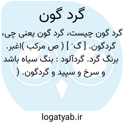 گردگون. [ گ َ ] ( ص مرکب )اغبر. برنگ گرد. گردآلود: بنگ سیاه باشد و سرخ و سپید و گردگون. ( الابنیه عن حقایق الادویه ).