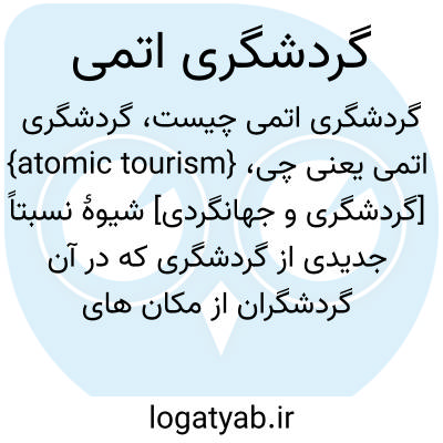 {atomic tourism} [گردشگری و جهانگردی] شیوۀ نسبتاً جدیدی از گردشگری که در آن گردشگران از مکان های پراهمیت در تاریخ رویدادهای اتمی بازدید می کنند