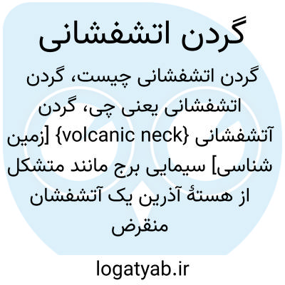 {volcanic neck} [زمین شناسی] سیمایی برج مانند متشکل از هستۀ آذرین یک آتشفشان منقرض که بخش های بیرونی آن فرسایش یافته است