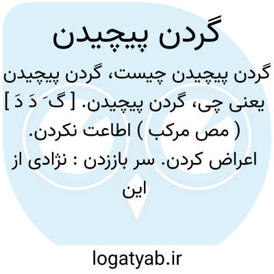( مصدر ) ۱ - اعراض کردن سرباز زدن سرپیچی کردن: چو گردن بپیچی زفرمان شاه مرا تابش روز گردد تباه. ۲ - منحرف شدن: نژادی ازین نامورتر کراست ? خردمند گردن نپیچد زراست.