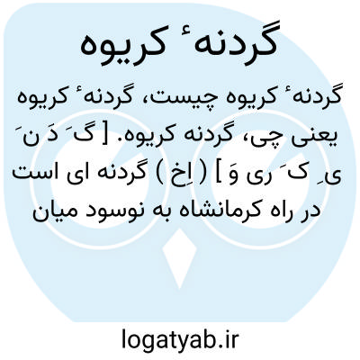 گردنه کریوه. [ گ َ دَ ن َ ی ِ ک َ ری وَ ] ( اِخ ) گردنه ای است در راه کرمانشاه به نوسود میان قشلاق و گردنه شمشیر، واقع در 114000گزی کرمانشاه.