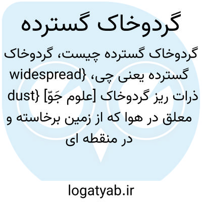 {widespread dust} [علوم جَوّ] ذرات ریز گردوخاک معلق در هوا که از زمین برخاسته و در منقطه ای پهناور پخش شده باشد