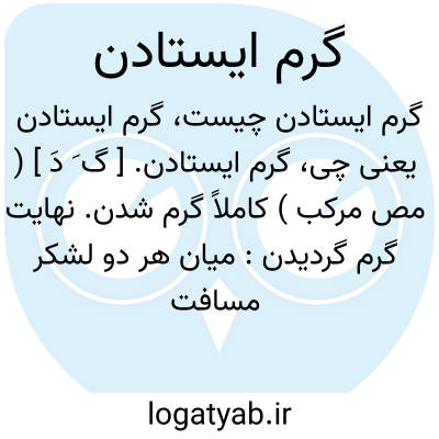 گرم ایستادن. [ گ َ دَ ] ( مص مرکب ) کاملاً گرم شدن. نهایت گرم گردیدن: میان هر دو لشکر مسافت [ لشکر محمود و مسعود ] نیم فرسنگ بود و هوا سخت گرم ایستاد. ( تاریخ بیهقی چ ادیب ص 118 ). امیر به گرگان رسید و هوا سخت گرم ایستاده بود. ( تاریخ بیهقی چ ادیب ص 476 ).