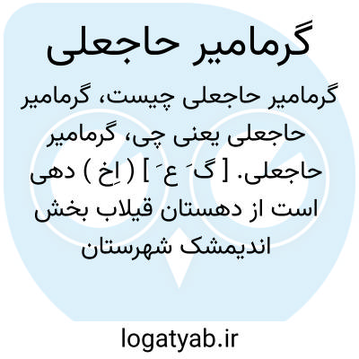 گرمامیر حاجعلی. [ گ َ ع َ ] ( اِخ ) دهی است از دهستان قیلاب بخش اندیمشک شهرستان دزفول واقع در 45 هزارگزی شمال خاوری اندیمشک و کنار راه آهن اهواز به تهران. منطقه ای است کوهستانی و گرمسیر، دارای 160 تن سکنه. آب آنجا از رودخانه تأمین میشود. محصول آن غلات و شغل اهالی زراعت و کارگری راه آهن میباشد. صنایع دستی آنان قالی بافی و راه آن مالرو است. ساکنین از طایفه عشایر لر هستند. دبستان و تلفن دارد. ( از فرهنگ جغرافیایی ایران، ج 6 ).