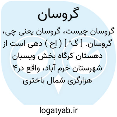 گروسان. [ گ ُ ] ( اِخ ) دهی است از دهستان کرگاه بخش ویسبان شهرستان خرم آباد، واقع در4 هزارگزی شمال باختری ماسور و 2 هزارگزی شمال شوسه خرم آباد به اندیمشک. هوای آن معتدل و دارای 100 تن سکنه است. آب آنجا از رودخانه خرم آباد و چشمه تأمین میشود. محصول آن غلات، تریاک، برنج، صیفی، حبوبات و شغل اهالی زراعت و راه آن مالرو است. ساکنین از طایفه بهاروند هستند. ( فرهنگ جغرافیائی ایران ج 6 ).