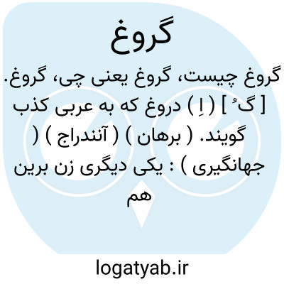 گروغ. [ گ ُ ] ( اِ ) دروغ که به عربی کذب گویند. ( برهان ) ( آنندراج ) ( جهانگیری ):