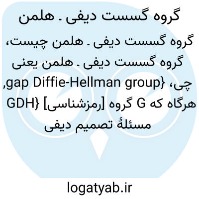 {gap Diffie-Hellman group, GDH} [رمزشناسی] گروه G هرگاه که مسئلۀ تصمیم دیفی هلمن روی آن در زمان چندجمله ای حل پذیر باشد، اما احتمال وجود یک الگوریتم/ خوارزمی احتمـالاتی بـرای حـل مسئلۀ محاسبـاتی دیفی هلمن بر روی آن گروه در زمان چند جمله ای ناچیز باشد
