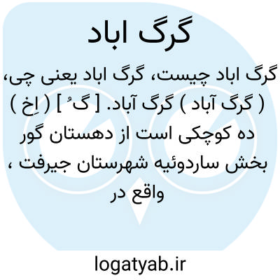 ( گرگ آباد ) گرگ آباد. [ گ ُ ] ( اِخ ) ده کوچکی است از دهستان گور بخش ساردوئیه شهرستان جیرفت، واقع در 62000گزی جنوب خاوری ساردوئیه.و 2000گزی شمال راه مالرو دارزین به ساردوئیه دارای 12 تن سکنه است. ( از فرهنگ جغرافیایی ایران ج 8 ).
