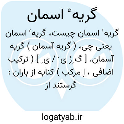 ( گریه آسمان ) گریه آسمان. [ گ ِرْ ی َ / ی ِ ] ( ترکیب اضافی، اِ مرکب ) کنایه از باران: