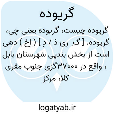 گریوده. [ گ ِ ری دَ / دِ ] ( اِخ ) دهی است از بخش بندپی شهرستان بابل، واقع در 37000گزی جنوب مقری کلا، مرکز بخش بندپی. هوای آن سرد و دارای 420 تن سکنه است. آب آنجا از چشمه تأمین میشود. محصول آن غلات و شغل اهالی زراعت و راه آن مالرو است. شغل اکثر مردان آبادی خیاطی و نجاری است که در زمستان در اطراف بابل و آمل و دیگر نقاط مازندران بطور سیار به کسب مشغول و تابستان بمحل خود برمیگردند. از آثار ابنیه قدیم برجی دارد. ( فرهنگ جغرافیائی ایران ج 3 ).