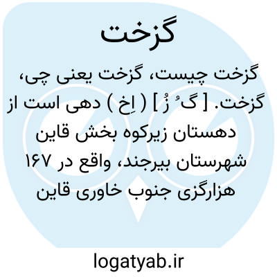 گزخت. [ گ ُ زُ ] ( اِخ ) دهی است از دهستان زیرکوه بخش قاین شهرستان بیرجند، واقع در 167 هزارگزی جنوب خاوری قاین و 5هزارگزی جنوب شاهرخت در دامنه و هوای آن گرم و دارای 307 تن سکنه میباشد. آب آنجا از قنات تأمین میشودو محصول آن غلات، برنج، تریاک و شغل اهالی زراعت و راه آن مالرو است. ( از فرهنگ جغرافیائی ایران ج 9 ).