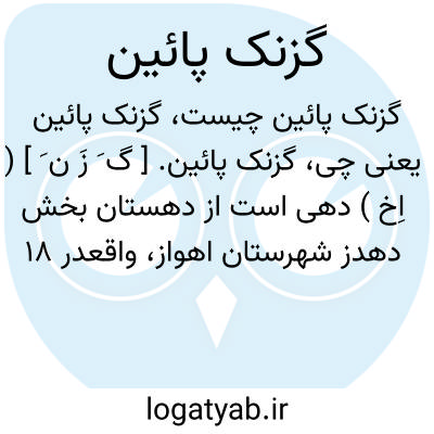 گزنک پائین. [ گ َ زَ ن َ ] ( اِخ ) دهی است از دهستان بخش دهدز شهرستان اهواز، واقعدر 18 هزارگزی شمال خاوری دهدز و کنار راه مالرو امیر هارون به گزنک بالا. هوای آن معتدل و دارای 175 تن سکنه است. آب آنجا از چشمه و قنات تأمین میشود و محصول آن غلات، تریاک و شغل اهالی زراعت و گله داری و راه آن مالرو است. ( از فرهنگ جغرافیائی ایران ج 6 ).