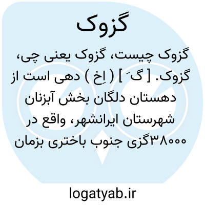 گزوک. [ گ َ ] ( اِخ ) دهی است از دهستان دلگان بخش آبزنان شهرستان ایرانشهر، واقع در 38000گزی جنوب باختری بزمان کنار راه مالرو بمپور به ریگان. هوای آن گرم و دارای 100 تن سکنه است. آب آنجا از قنات تأمین میشود و محصول آن غلات و خرما و لبنیات و شغل اهالی زراعت و گله داری است. راه آن مالرو است. ساکنان از طایفه بامری هستند. ( از فرهنگ جغرافیائی ایران ج 8 ).