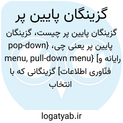 {pop-down menu, pull-down menu} [رایانه و فنّاوری اطلاعات] گزینگانی که با انتخاب یک گزینۀ مورد نظر در نوار گزینه، رو به پایین باز می شود متـ. پایین پَر