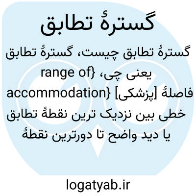 {range of accommodation} [پزشکی] فاصلۀ خطی بین نزدیک ترین نقطۀ تطابق یا دید واضح تا دورترین نقطۀ تطابق یا دید واضح
