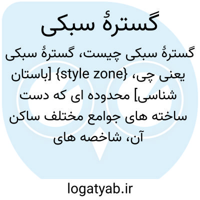 {style zone} [باستان شناسی] محدوده ای که دست ساخته های جوامع مختلف ساکن آن، شاخصه های سبکی مشابه دارند
