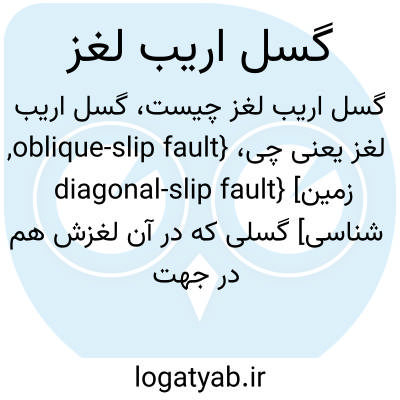 {oblique-slip fault, diagonal-slip fault} [زمین شناسی] گسلی که در آن لغزش هم در جهت امتداد و هم در جهت شیب رخ داده باشد