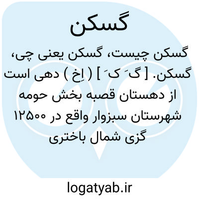 گسکن. [ گ َ ک َ ] ( اِخ ) دهی است از دهستان قصبه بخش حومه شهرستان سبزوار واقع در 12500 گزی شمال باختری سبزوار. هوای آن معتدل و دارای 1264 تن سکنه است. آب آنجا از قنات تأمین میشود. محصول آن غلات، پنبه و شغل اهالی زراعت و کرباس بافی است. راه آن مالرو می باشد و از خسروگرد اتومبیل میتوان برد. ( از فرهنگ جغرافیایی ایران ج 9 ).