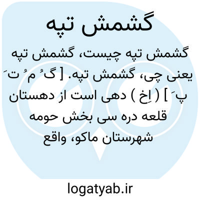 گشمش تپه. [ گ ُ م ُ ت َ پ َ ] ( اِخ ) دهی است از دهستان قلعه دره سی بخش حومه شهرستان ماکو، واقع در 13هزارگزی شمال باختری ماکو، در مسیر راه شوسه ماکو به بازرگانان. هوای آن معتدل و دارای 597 تن سکنه است. آب آن از رودخانه آق چای و محصول عمده آن غلات، حبوبات و بزرک است. شغل اهالی زراعت و گله داری و صنایع دستی آنان جاجیم بافی است. ( از فرهنگ جغرافیایی ایران ج 4 ).