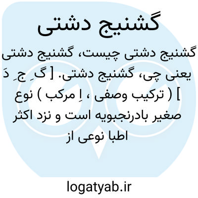 گشنیج دشتی. [ گ ِ ج ِ دَ ] ( ترکیب وصفی، اِ مرکب ) نوع صغیر بادرنجبویه است و نزد اکثر اطبا نوعی از شاهترج است و نزد بعضی مخلصه را نامند و نواب علویخان مرحوم فرموده که آن کزبره بری است. ( فهرست مخزن الادویه ).