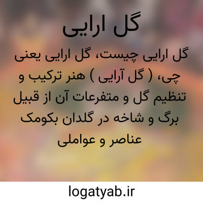 ( گل آرایی ) ( ~. ) (حامص. ) هنر ترکیب و تنظیم گل و متفرعات آن از قبیل برگ و شاخه در گلدان به کمک عناصر و عواملی از قبیل سنگ ریزه و کندة درخت و امثال آن به نحو متناسب.