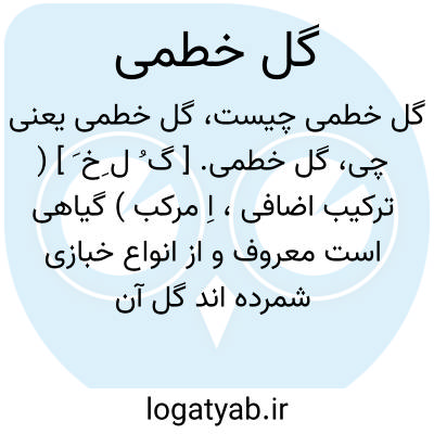 گل خطمی. [ گ ُ خ ِ] ( اِخ ) دهی است از دهستان تبادکان بخش حومه ارداک شهرستان مشهد واقع در 2هزارگزی جنوب مشهد. هوای آن معتدل و دارای 253 تن سکنه است. آب آن از رودخانه و محصول آن غلات است. شغل اهالی زراعت و مالداری و راه آن اتومبیل رو است. ( از فرهنگ جغرافیایی ایران ج 9 ).