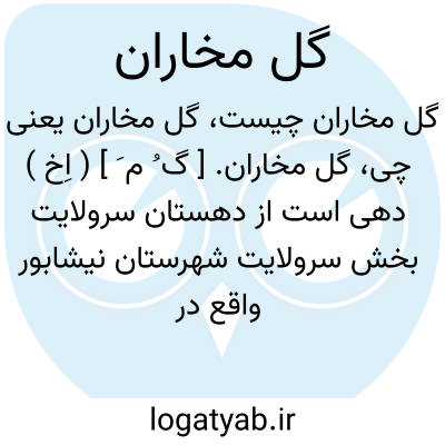 گل مخاران. [ گ ُ م َ ] ( اِخ ) دهی است از دهستان سرولایت بخش سرولایت شهرستان نیشابور واقع در 30هزارگزی چکنه بالا. هوای آن معتدل و دارای 185 تن سکنه است. آب آن از قنات و محصول آن غلات است. شغل اهالی زراعت و مالداری و صنایع دستی آنان کرباس بافی است. راه مالرو دارد. ( از فرهنگ جغرافیایی ایران ج 9 ).