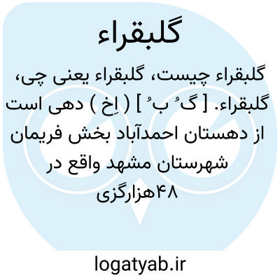 گلبقراء. [ گ ُ ب ُ ] ( اِخ ) دهی است از دهستان احمدآباد بخش فریمان شهرستان مشهد واقع در 48هزارگزی شمال باختری فریمان. هوای آن معتدل و دارای 154 تن سکنه است. آب آن از قنات و محصول آن غلات و چغندر است. شغل اهالی زراعت و گله داری و مالداری و راه آن اتومبیل رو است. ( از فرهنگ جغرافیایی ایران ج 9 ).