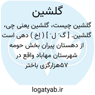 گلشین. [ گ َ ل َ ] ( اِخ ) دهی است از دهستان پیران بخش حومه شهرستان مهاباد واقع در 57هزارگزی باختر مهاباد و 2هزارگزی باختر راه شوسه خانه به نقده. هوای آن معتدل و دارای 143 تن سکنه است. آب آن از رودخانه لاوین و محصول آن غلات، توتون و حبوبات است. شغل اهالی زراعت و گله داری و صنایع دستی آنان جاجیم بافی است. راه ارابه رو دارد. ( از فرهنگ جغرافیایی ایران ج 4 ).