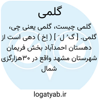 گلمی. [ گ ُ ل َ ] ( اِخ ) دهی است از دهستان احمدآباد بخش فریمان شهرستان مشهد واقع در 30هزارگزی شمال باختری فریمان. هوای آن معتدل و دارای 71 تن سکنه است. آب آن از قنات و محصول آن غلات است. شغل اهالی زراعت و راه آن مالرو است. ( از فرهنگ جغرافیایی ایران ج 9 ).