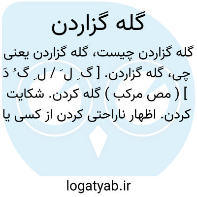 گله گزاردن. [ گ ِ ل َ / ل ِ گ ُ دَ ] ( مص مرکب ) گله کردن. شکایت کردن. اظهار ناراحتی کردن از کسی یا چیزی.