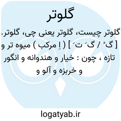 گلوتر. [ گ ُ / گ َ ت َ ] ( اِ مرکب ) میوه تر و تازه، چون: خیار و هندوانه و انگور و خربزه و آلو و غیره... میوه تازه که مهمان و مسافر را پیش آرند. ( مؤلف ).