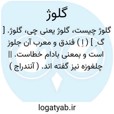 گلوژ. [ گ ِ ] ( اِ ) فندق و معرب آن جلوز است و بمعنی بادام خطاست. || چلغوزه نیز گفته اند. ( آنندراج ) ( انجمن آرا ). و رجوع به گلوز شود.