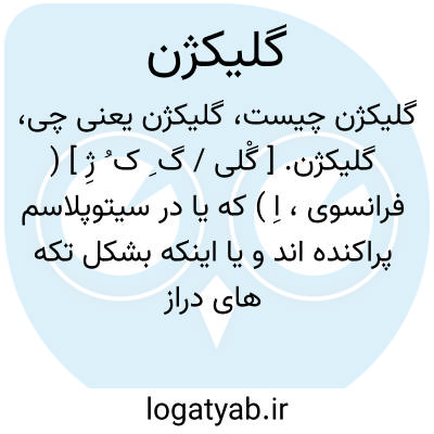 ( اسم ) جزو گلوسید ها و از دست. کلوئید های ازژن است. گرد سفید رنگی است که با محلول لوگل رنگ قرمز نارنجی میدهد. وزن مولکولیش زیاد و در حدود ۲۵٠٠ است ( در صورتیکه وزن مولکولی نشاسته در حدود ۲٠٠٠٠ است ). گلیکژن در نتیج. تراکم مولکولهای گلوکز با از دست دادن آب در کبد تولید و ذخیره میگردد و تدریجا بصورت گلوکز از راه ورید فوق کبدی خارج و وارد خون میشود و در اختیار انساج قرار میگیرد. مقدار گلوکز موجود در خون همیشه ثابت و معادل یک گرم در لیتر است در کبد دیاستازی بنام گلیکژ ناز وجود دارد که مستقیما گلیکژن را به گلوکز تبدیل میکند. مقدار گلیکژن کبد بطور طبیعی ۵ تا ۱٠ درصد وزن کبد است گلیکوژن.