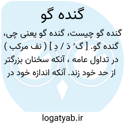 لغت نامه دهخدا گنده گو. [ گ ُ دَ / دِ ] ( نف مرکب ) در تداول عامه، آنکه سخنان بزرگتر از حد خود زند. آنکه اندازه خود در سخن گفتن نگاه ندارد.