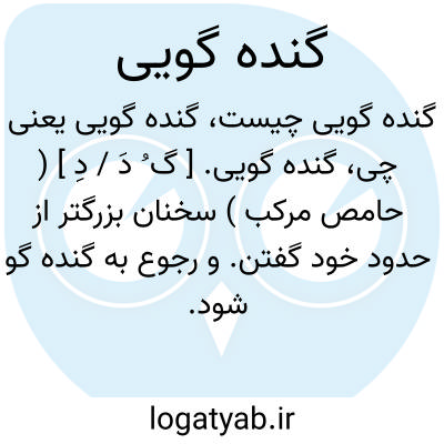 گنده گویی. [ گ ُ دَ / دِ ] ( حامص مرکب ) سخنان بزرگتر از حدود خود گفتن. و رجوع به گنده گو شود.