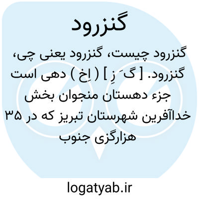 گنزرود. [ گ َ زِ ] ( اِخ ) دهی است جزء دهستان منجوان بخش خداآفرین شهرستان تبریز که در 35 هزارگزی جنوب باختری خداآفرین و 32500 گزی شوسه اهر به کلیبر واقع شده است. هوای آن گرم مالاریایی و سکنه آن 66 تن است. آب آن از چشمه تأمین میشود. محصول آن غلات و توتون و پنبه و شغل اهالی زراعت و گله داری و راه آن مالرو است. ( از فرهنگ جغرافیایی ایران ج 4 ).