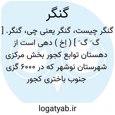 گنگر. [ گ َ گ َ ] ( اِخ ) دهی است از دهستان توابع کجور بخش مرکزی شهرستان نوشهر که در 6000 گزی جنوب باختری کجور واقع شده است. هوای آن سرد و سکنه اش 150 تن است. آب آن از چشمه و رودخانه محلی تأمین میشود. محصول آن غلات، ارزن و شغل اهالی زراعت است. عده ای زمستان به حدود قشلاق کجور به کارگری میروند و شغل اکثر آنها حفر چاه و مکاری است. راه آن مالرو است. ( از فرهنگ جغرافیایی ایران ج 3 ). یکی از دهات کجور مازندران است. ( مازندران و استرآباد رابینو ص 108 و ترجمه همان کتاب ص 146 ).