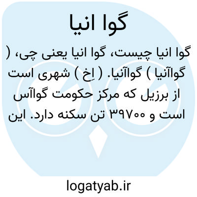 ( گواآنیا ) گواآنیا. ( اِخ ) شهری است از برزیل که مرکز حکومت گواآس است و 39700 تن سکنه دارد. این شهر مرکزیت تجاری دارد.