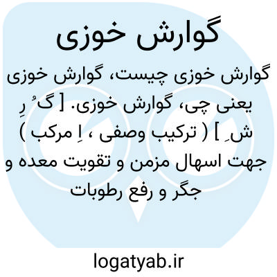 گوارش خوزی. [ گ ُ رِ ش ِ ] ( ترکیب وصفی، اِ مرکب ) جهت اسهال مزمن و تقویت معده و جگر و رفع رطوبات معده و امعاء نافع و موافق امزجه اطفال و زلق الامعاءبه غایت مفید است، از تراکیب محمدبن زکریا است. دانه انگور که از سرکه استخراج کرده باشند و بو داده و مثل سرمه صلایه کرده سی وپنج مثقال تخم مورْد، شصت مثقال خرنوب نبطی، گلنار، جوزبوا، مازج، از هر یک ده مثقال، کندر، نانخواه، سعد، مصطکی، سنبل الطیب، از هر یک پنج مثقال با شکر یا عسل به قوام آورده دو وزن ادویه بسرشند شربتی تا سه مثقال. ( تحفه حکیم مؤمن ).