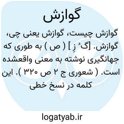 گوازش. [گ ُ زِ ] ( ص ) به طوری که جهانگیری نوشته به معنی واقعشده است. ( شعوری ج 2 ص 320 ). این کلمه در نسخ خطی فرهنگ جهانگیری متعلق به کتابخانه لغت نامه یافته نشد.