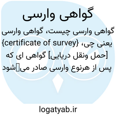 فرهنگستان زبان و ادب {certificate of survey} [حمل ونقل دریایی] گواهی ای که پس از هرنوع وارسی صادر میشود