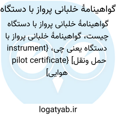 {instrument pilot certificate} [حمل ونقل هوایی] گواهینامه ای که براساس آن خلبان مجاز به هدایت هواپیما به کمک ابزار دقیق است