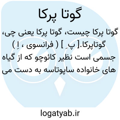 گوتاپرکا.[ پ ِ ] ( فرانسوی، اِ ) جسمی است نظیر کائوچو که از گیاه های خانواده ساپوتاسه به دست می آورند. محلول کلرفرم دار یک در ده آن را به نام تروماتیسین در بیماریهای جلدی و برگهای گوتاپرکا را برای تهیه پانسمان به کار می برند. زخمها را در مقابل هجوم میکربهای خارجی مصون میدارد، بعلاوه مانع تبخیر مایع و آب بافتها میگردد و بدین طریق از خشک شدن پانسمانها جلوگیری میشود... ( درمانشناسی و فارماکودینامی ج 1 تألیف احمد عطایی ص 451 ). بیشتر صفات کائوچو را دارا می باشد و دارای فرمول n( H16 C10 ) و n ( H17 C10 ) میباشد، بنابراین از ترکیبات ایزومر کائوچوک خالص محسوب میگردد، یعنی در فرمولهای آمپیریک با کائوچو مشابه می باشد و در ساختمان ملکولی با آن اختلاف دارد. از این ماده در صنعت به عنوان ایزولاتور و عایق استفاده میشود و برای پوشش سیمهای برق و تهیه بارانی و همچنین لوازم جراحی به کار میرود. ( گیاه شناسی تشریح عمومی نباتات تألیف حبیب اﷲ ثابتی ص 183 ).