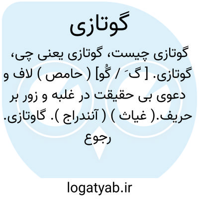 گوتازی. [ گ َ / گُو] ( حامص ) لاف و دعوی بی حقیقت در غلبه و زور بر حریف.( غیاث ) ( آنندراج ). گاوتازی. رجوع به گاوتازی شود.