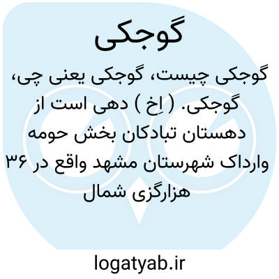 گوجکی. ( اِخ ) دهی است از دهستان تبادکان بخش حومه وارداک شهرستان مشهد واقع در 36 هزارگزی شمال خاوری مشهد کنار راه شوسه عمومی مشهد به خور بالا و پایین. این ده در جلگه واقع و هوای آن معتدل است و 548 تن سکنه دارد. آب آن از چشمه تأمین میشود. محصول آن غلات و شغل اهالی زراعت و مالداری است.راه مالرو دارد. ( از فرهنگ جغرافیایی ایران ج 9 ).