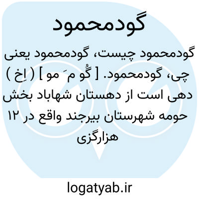 گودمحمود. [ گُو م َ مو ] ( اِخ ) دهی است از دهستان شهاباد بخش حومه شهرستان بیرجند واقع در 12 هزارگزی جنوب بیرجند. کوهستانی و معتدل است و سکنه آن 6 تن است. آب آن از قنات تأمین می شود. محصول آن غلات و باغات و شغل اهالی زراعت و راه آن مالرو است. مزرعه دهن گازه جزء این ده است. ( از فرهنگ جغرافیایی ایران ج 9 ).