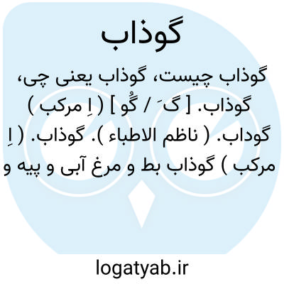 گوذاب. ( اِ مرکب ) گوذاب بط و مرغ آبی و پیه و جگر او به از گوشت او باشد و پیه او سخت لطیف باشد. ( ذخیره خوارزمشاهی ). رجوع به گوداب شود.