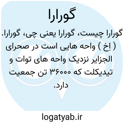 گورارا. ( اِخ ) واحه هایی است در صحرای الجزایر نزدیک واحه های توات و تیدیکلت که 36000 تن جمعیت دارد.