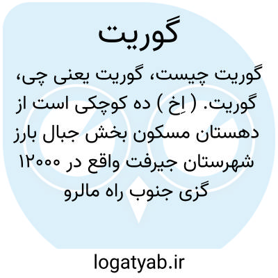 لغت نامه دهخدا گوریت. ( اِخ ) ده کوچکی است از دهستان مسکون بخش جبال بارز شهرستان جیرفت واقع در 12000 گزی جنوب راه مالرو مسکون به کروک. سکنه آن 8 تن است. ( از فرهنگ جغرافیایی ایران ج 8 ).